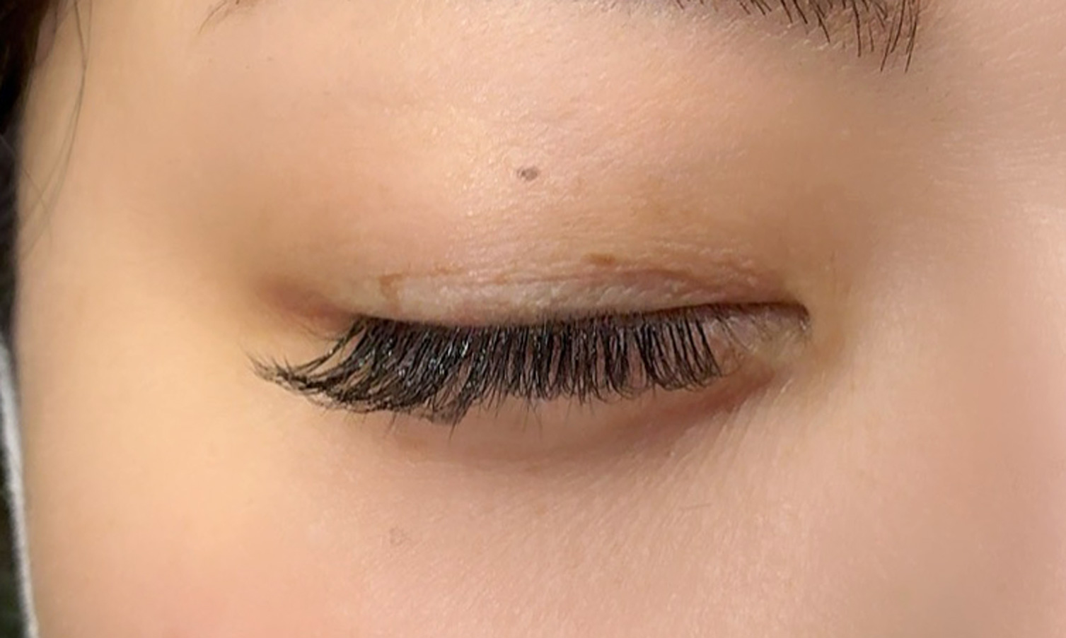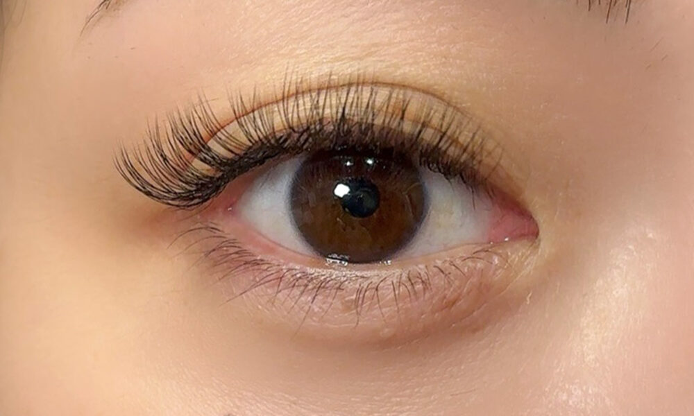 細めのエクステで扇状の束つくり、ふわっとしたボリュームのある目元に出してくれます。